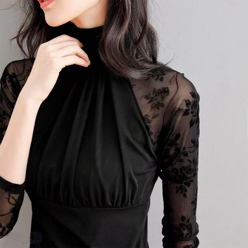 【熱銷爆款】秋季新款t恤顯瘦氣質百搭修身拼接高領打底衫設計感上衣女