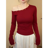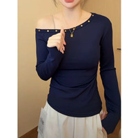 【氣質穿搭】秋冬新款鉚釘斜肩上衣,個性潮流韓版鉚釘設計,版型顯瘦不挑人,單穿內搭都好看